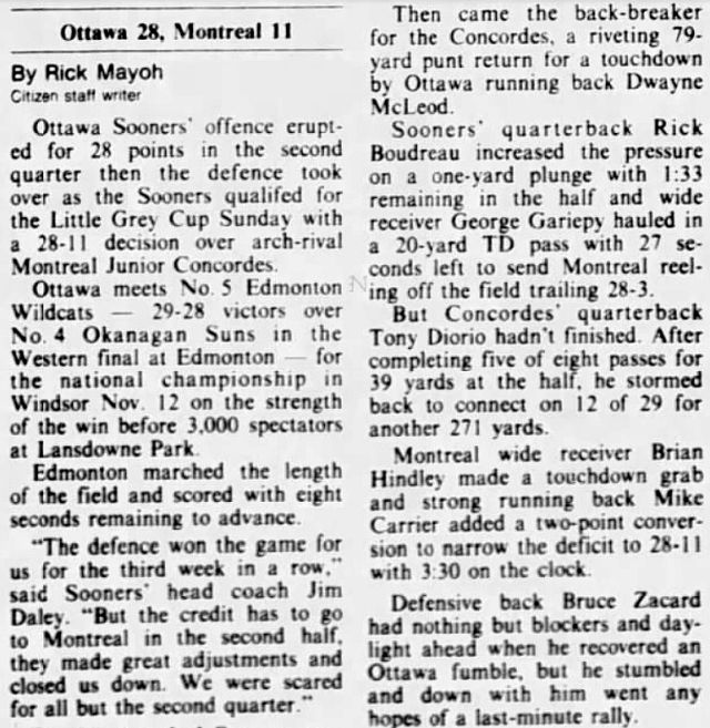 Oct 29th, 1983: "Sooners Beat Montreal to Make National Final"