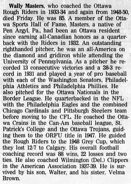 The following obituary appeared in the July 12th, 1992, Ottawa Citizen.