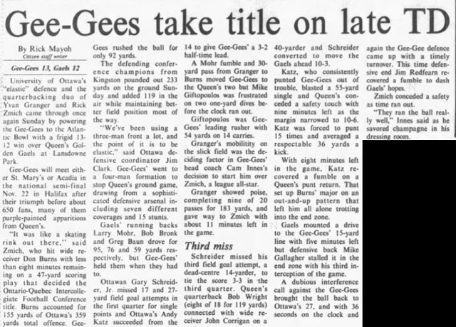 Oct 16th: Ottawa U. 34 @ Queen's 12 W
